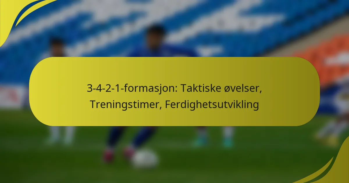 3-4-2-1-formasjonen er en strategisk oppstilling i fotball som balanserer defensiv styrke med angrepsmuligheter, med tre forsvarsspillere, fire midtbanespillere og to spisser. For å maksimere effektiviteten bør treningene inkludere taktiske øvelser som forbedrer spillernes posisjonering, bevegelse og samarbeid, og fremmer både individuelle ferdigheter og samspillet i laget.